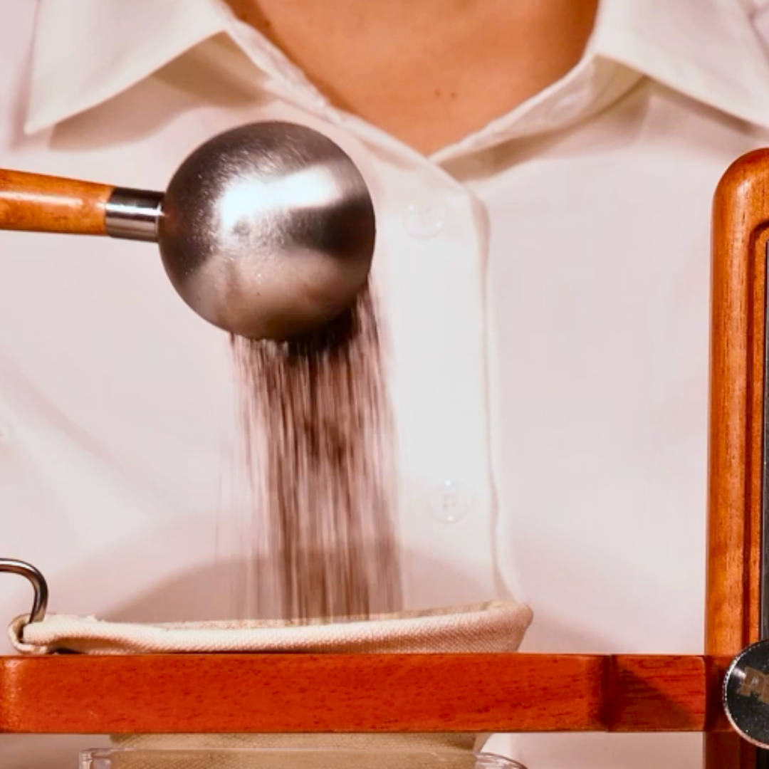 Facilita medir el café sin pesas. Está fabricada con acero inoxidable 304 y madera de cedro amargo protegida con el mismo acabado de nanotecnología antibacterial del chorreador.